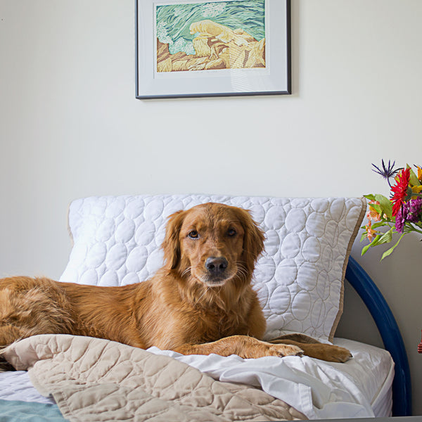 Print of a golden retriever on playing on the New England coast by artist Hannah Phelps