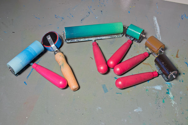 Soft, rubbery material is easy to cut into jigsaw shapes for relief prints.