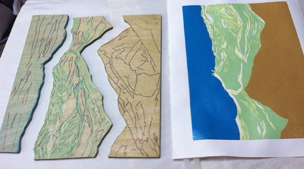Dozens of colors can be printed from a single block by combining two methods: jigsaw (cutting the block into pieces) and reduction (removing wood between layers).